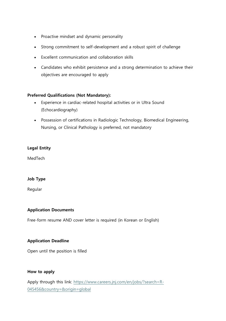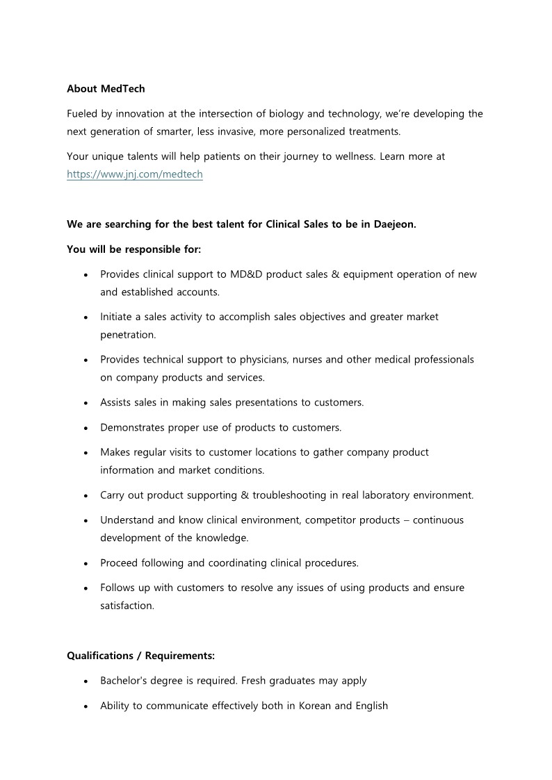 - l 채용 직무 : Clinical sales (Electrophysiology)