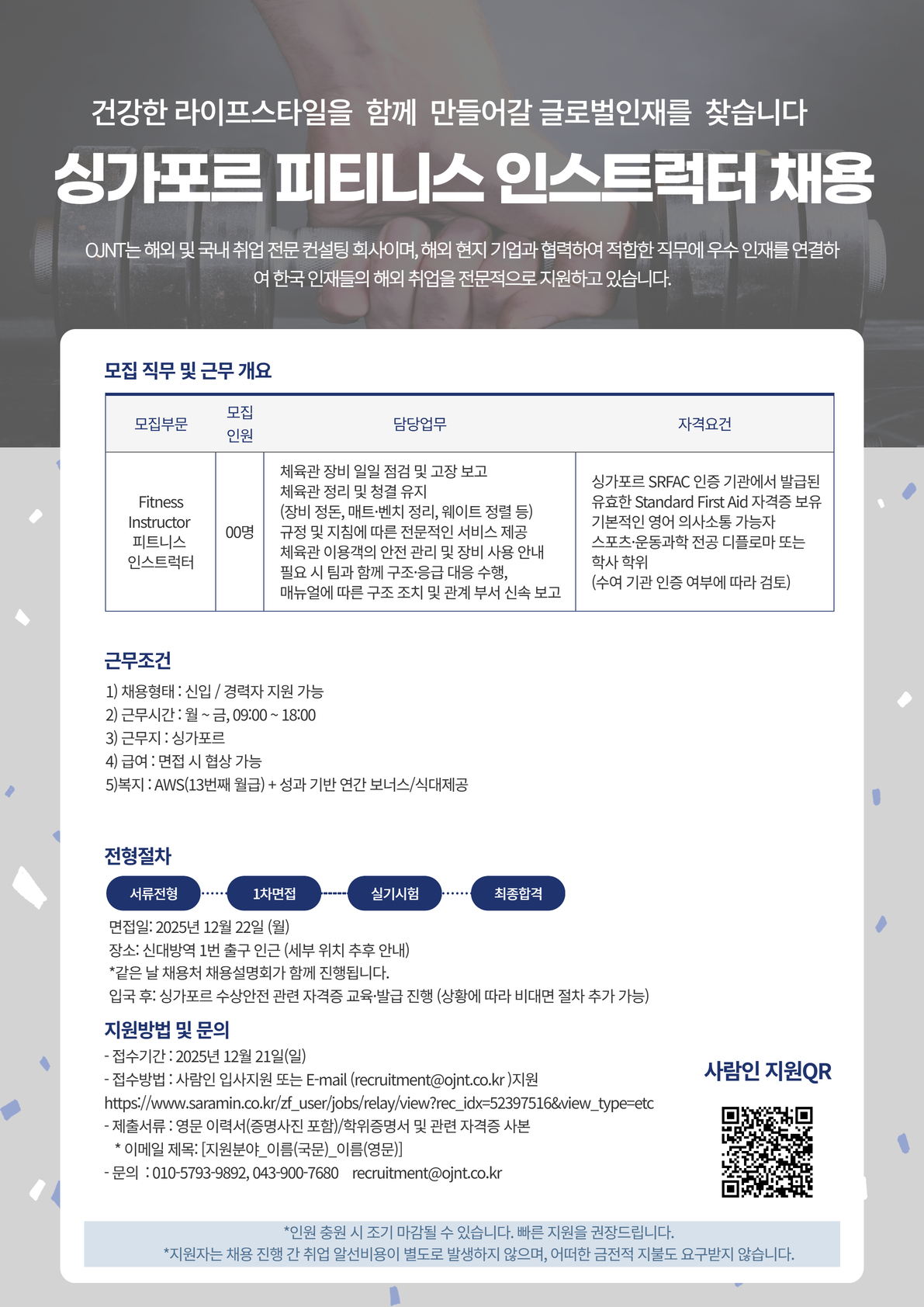 근무지: 싱가포르 스포츠공단(SportSG) 소속 피트니스센터