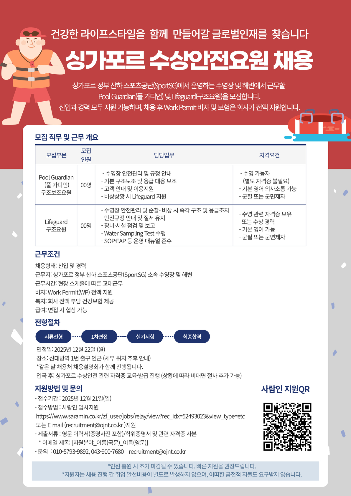 근무지: 싱가포르 스포츠공단(SportSG) 소속 수영장 및 해변