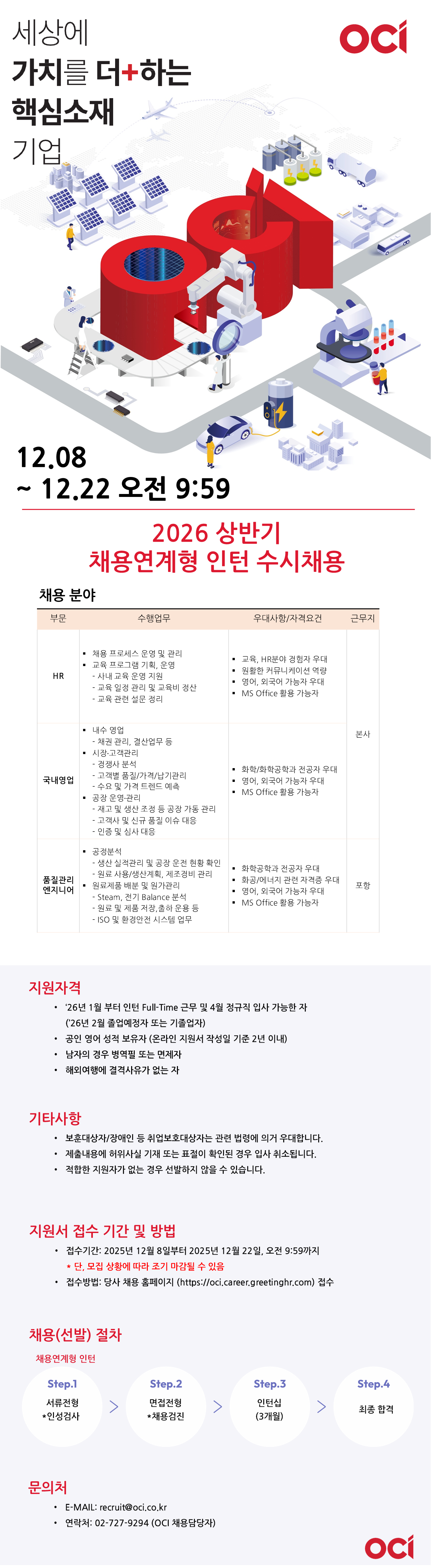 기업에서 등록한 채용 공고문을 공지하고 있습니다. 공고문을 참고하여 회사에 지원하시면 됩니다.