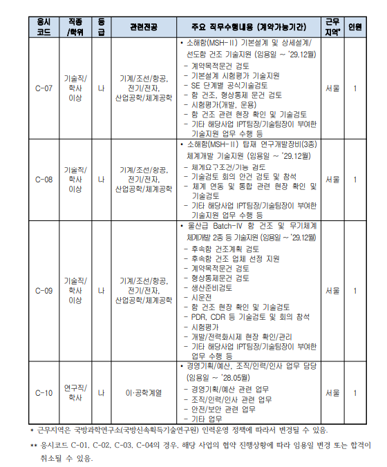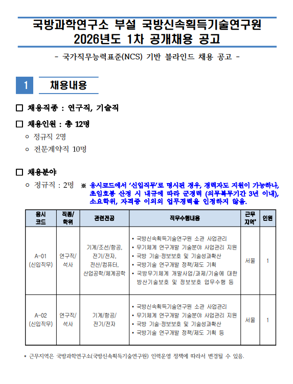 국방과학연구소 부설 국방신속획득기술연구원2026년도 1차 공개채용 공고