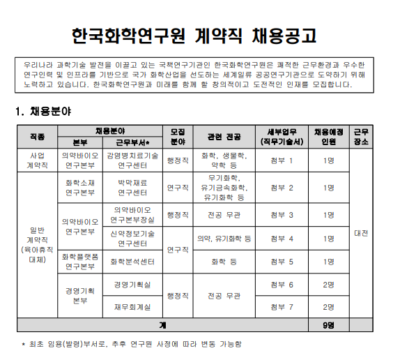기업홈페이지 https://www.krict.re.kr/ 공고URL https://job.career.co.kr/recruit/view/21616240 * 자세한 내용은 첨부파일 참고 바랍니다.