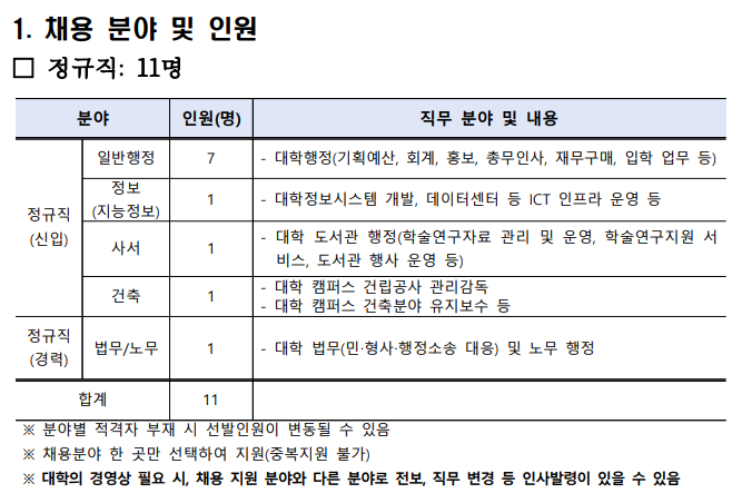 한국에너지공과대학교 일반행정/정보(지능정보)/사서/건축/법무/노무 직원 채용 공고