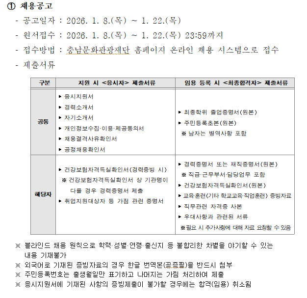 2026년 충남문화관광재단 제1차 직원(기간제근로자) 경력·공개경쟁 채용