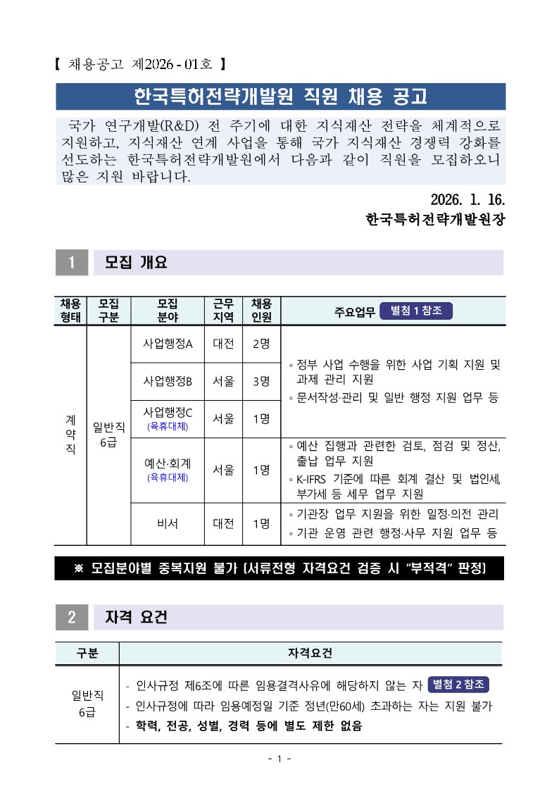 [한국특허전략개발원] 직원 채용 공고