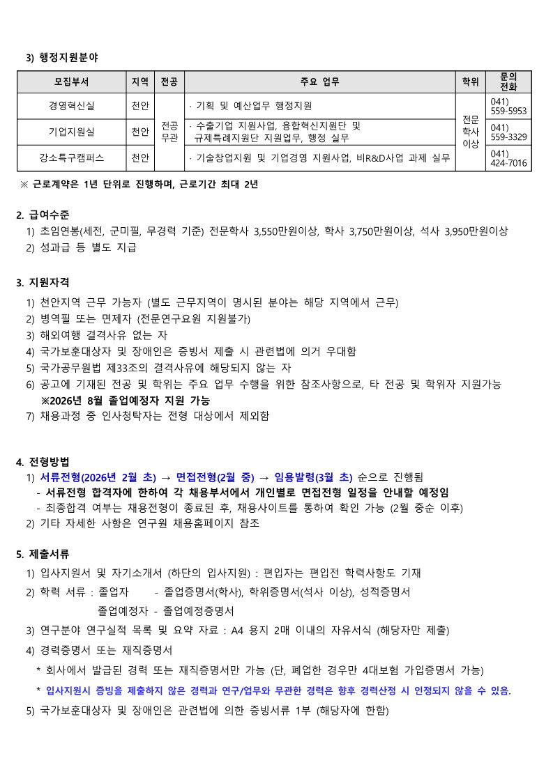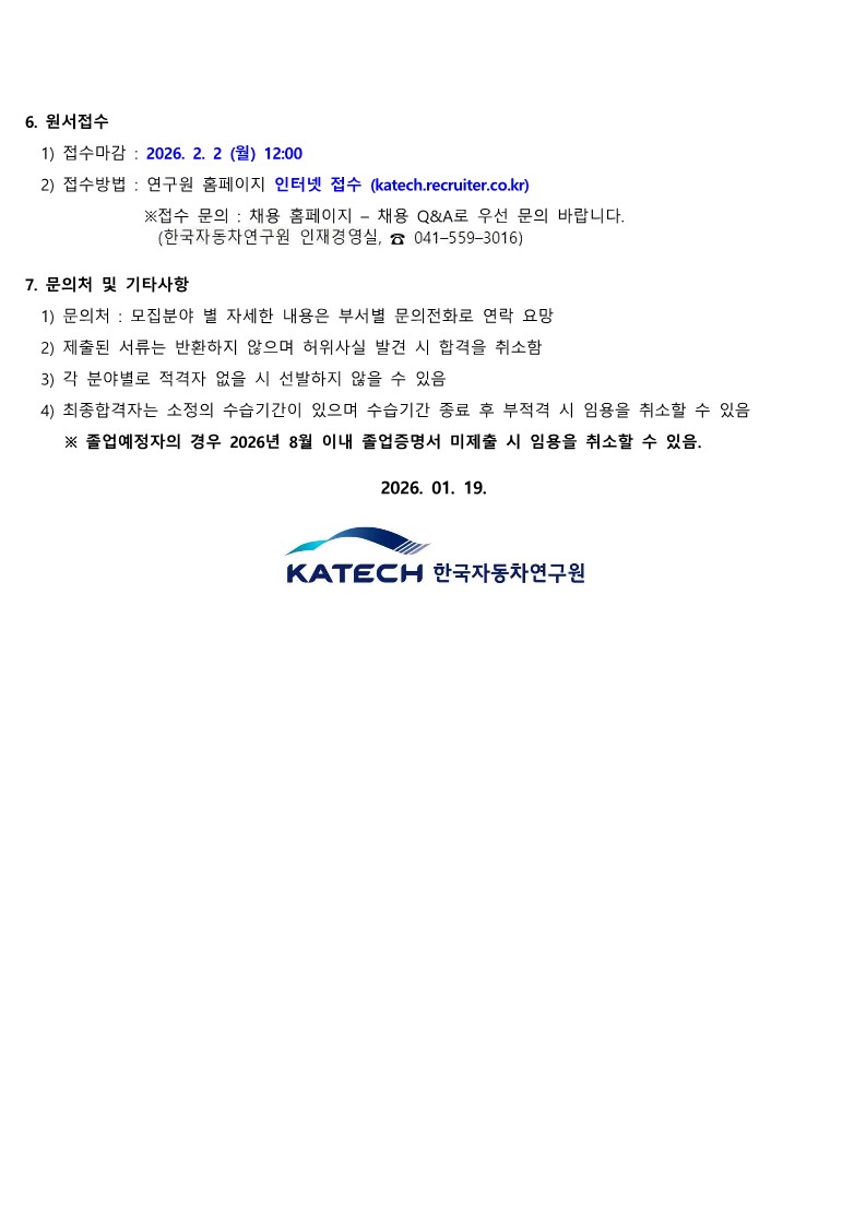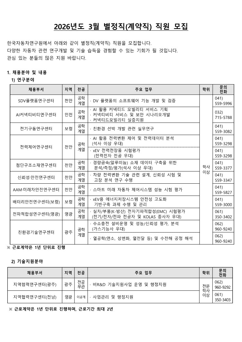 [한국자동차연구원] 2026년 3월 별정직(계약직) 채용 공고