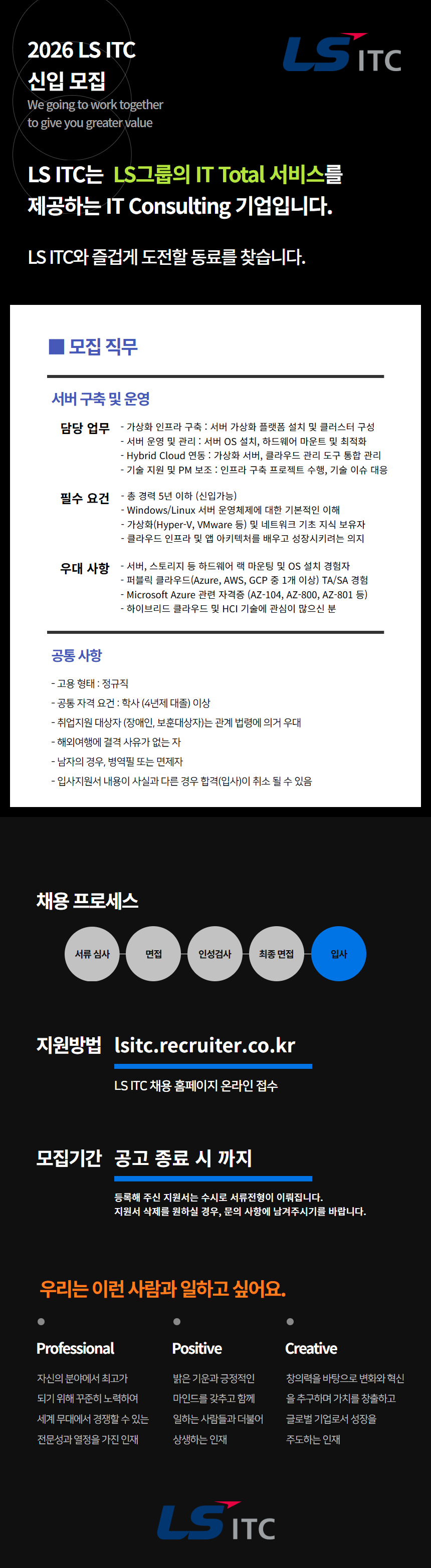 [LS ITC] 서버 구축 및 운영 신입 채용공고