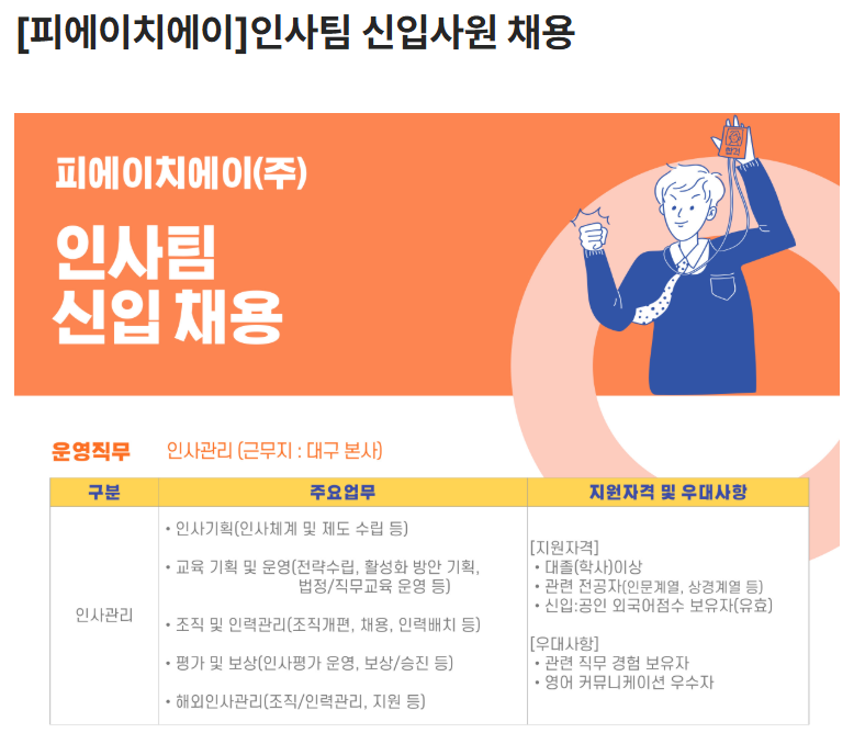 피에이치에이(주) 신입직원 채용 안내