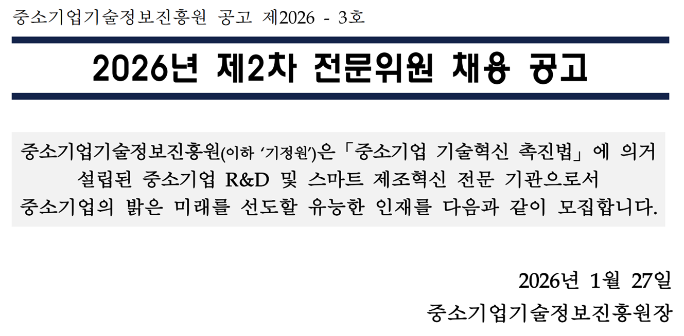 중소기업기술정보진흥원 2026년 제2차 전문위원 채용 공고