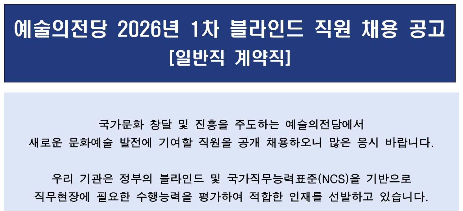 예술의전당 2026년 1차 블라인드 직원 채용 공고 [일반직 계약직]