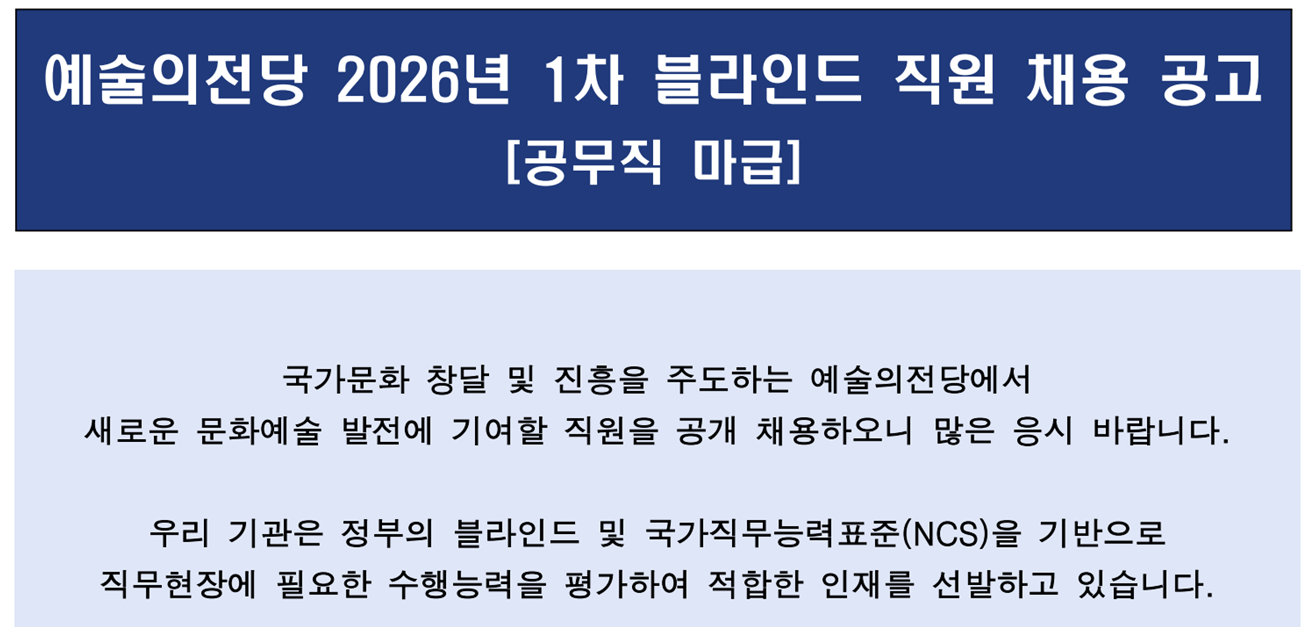 예술의전당 2026년 1차 블라인드 직원 채용 공고 [공무직 마급]