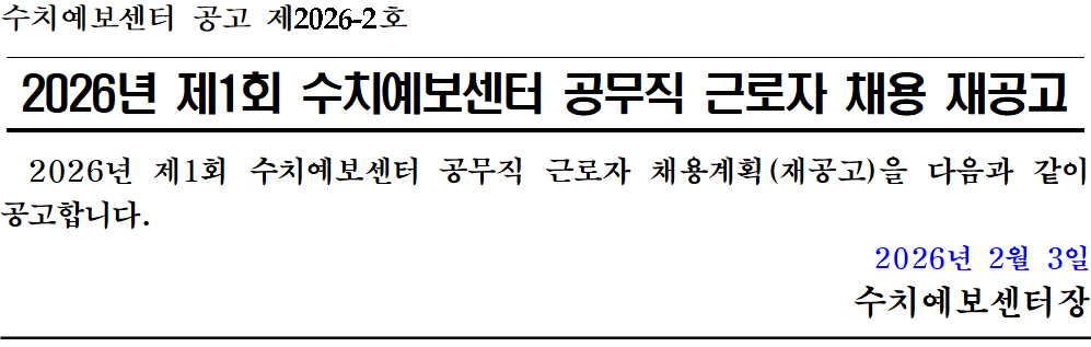 2026년도 제1회 수치예보센터 공무직 근로자 채용 재공고