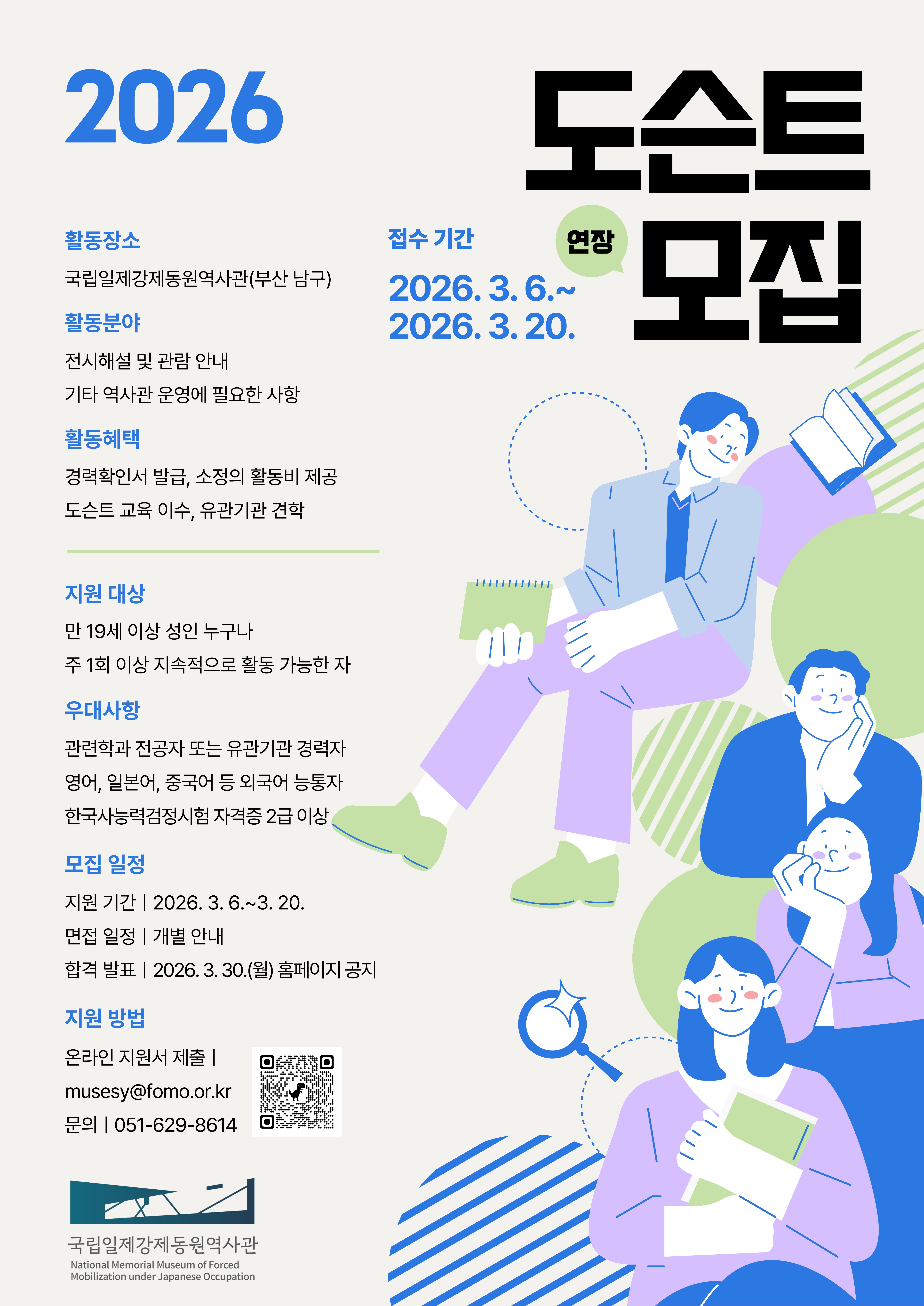 2026년도 국립일제강제동원역사관 전시해설사 모집 재공고(연장)