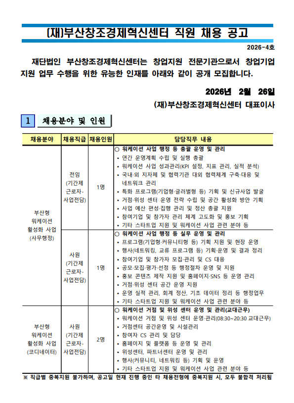 (재)부산창조경제혁신센터 직원 채용 공고문