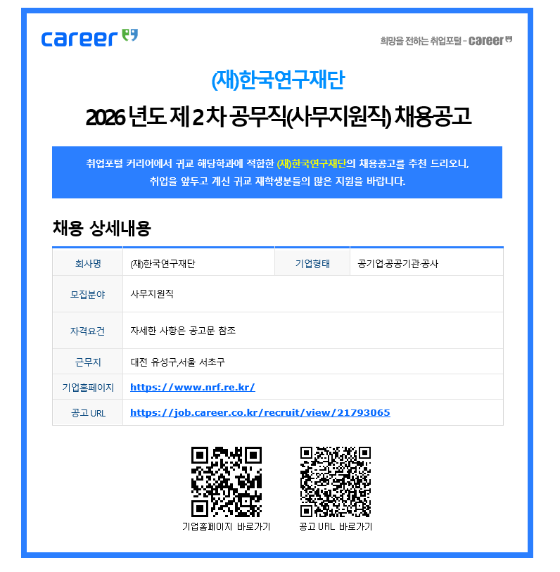 기업에서 등록한 채용 공고문을 공지하고 있습니다. 공고문을 참고하여 회사에 지원하시면 됩니다.