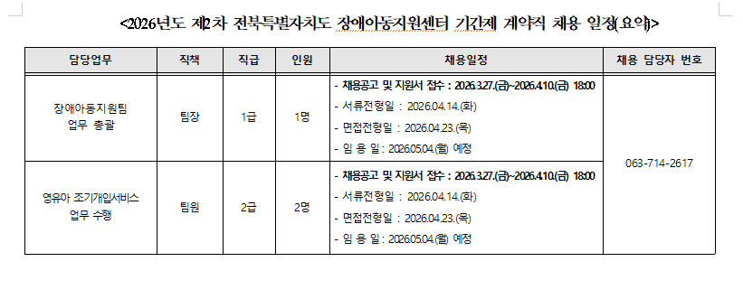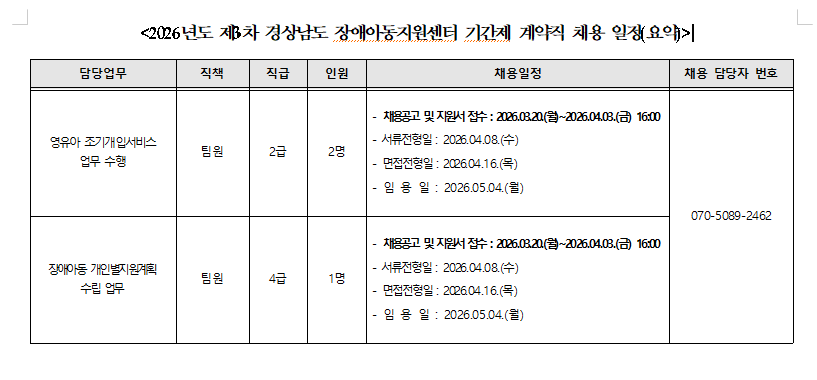 2026년 4월 지역장애아동지원센터(경남,전북) 기간제 계약직 채용