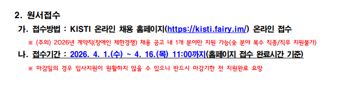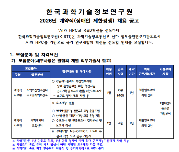 2026년 계약직(장애인 제한경쟁) 채용 공고