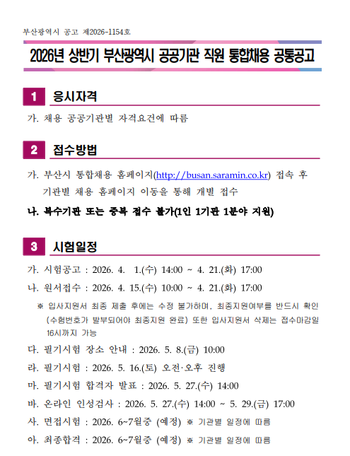2026년 상반기 부산광역시 공공기관 직원 통합채용 공통공고