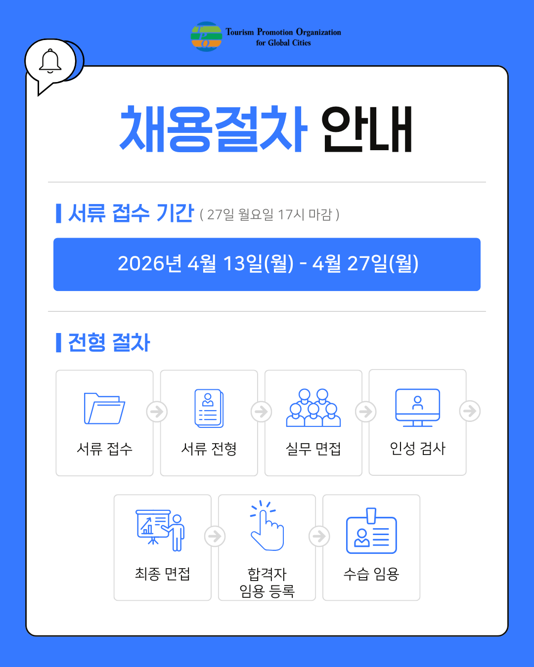 2026 글로벌도시 관광진흥기구(TPO) 정규직 채용: ~4/27(월) 17:00 접수마감