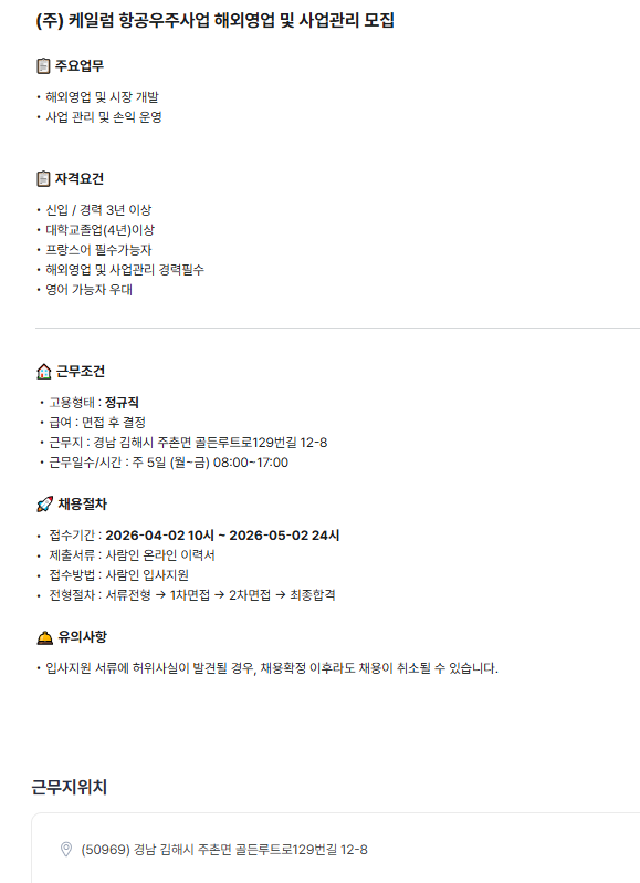 채용공고 주소: 하나아이티엠(주)] (주)케일럼 항공우주 해외영업·사업관리 모집 (D-10) - 사람인