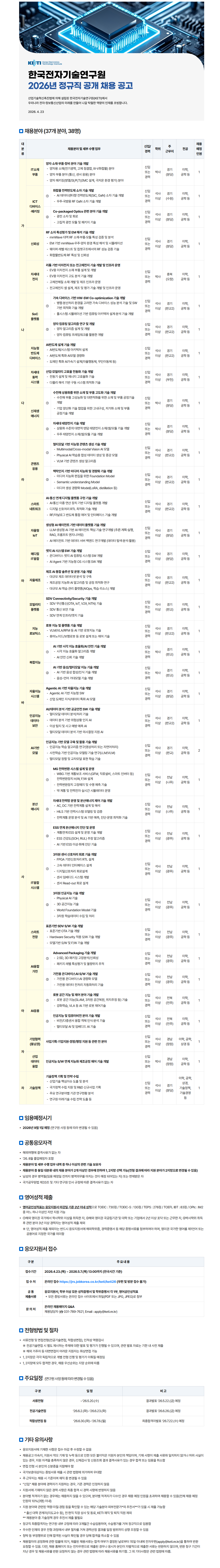 2026년 한국전자기술연구원 정규직 공개채용 공고(4/23~5/7 13:00)